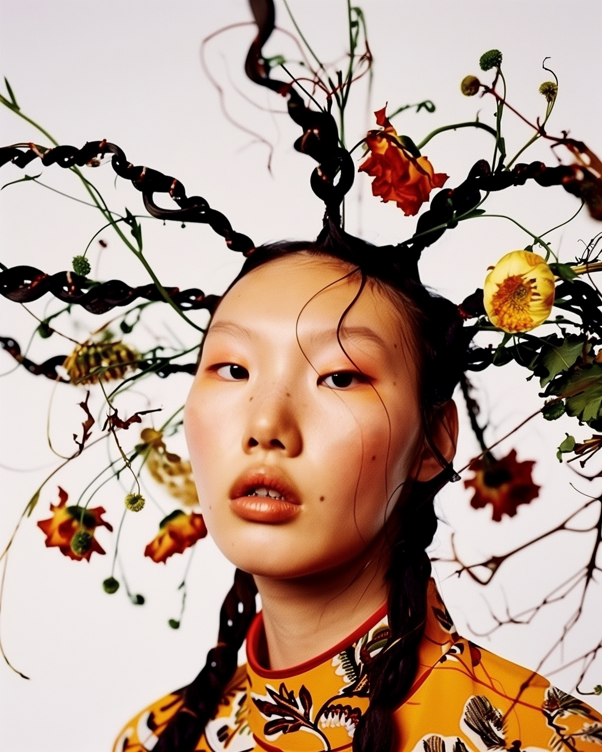 As part of my side projects, here is a collection of fashion photography stills generated with AI, using Midjourney.